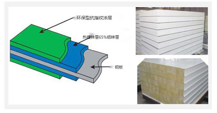 A.聚氨酯夾層板,總厚度50mm,密度50kg/m3;表面板厚度0.4mmG.I或0.5mm鋁合金;絕緣和抗風(fēng)性更好。